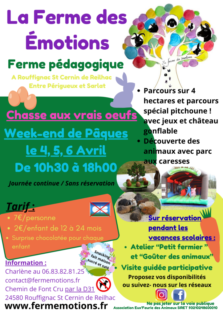 La Ferme des Émotions Chemin de Font Cru par la D31 24580 Rouffignac st Cernin de Reilhac